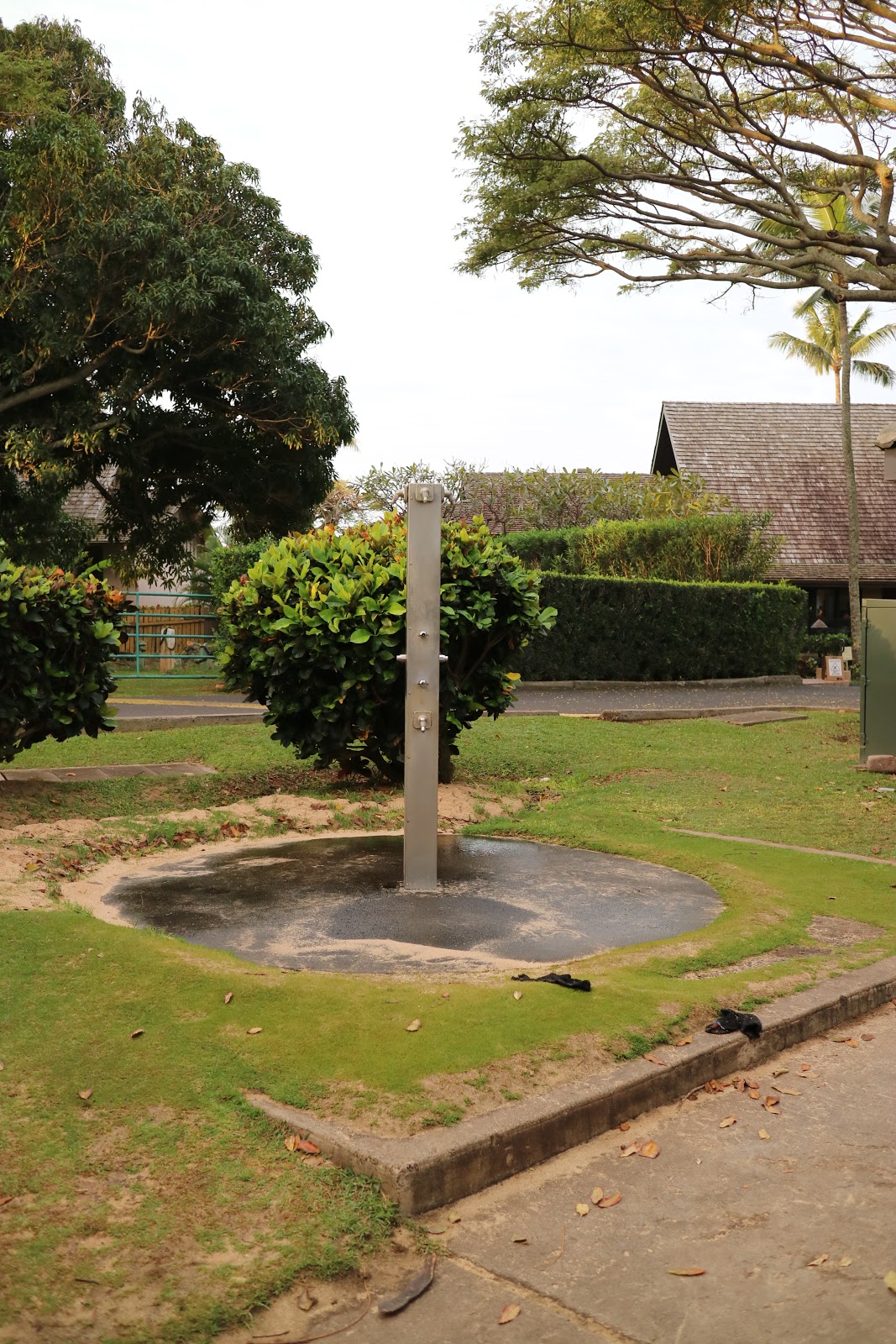 화장실 앞에 짠물을 헹궈내는 샤워기가 있고 해변 앞에도 있습니다.