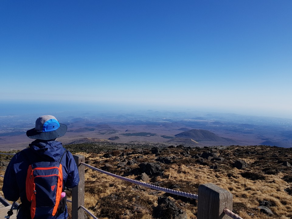 나무들도 괴기스럽고요 정상이 보이기 시작하면서 제주도를 한눈에 볼수 있습니다. 저의 뒷모습입니다.